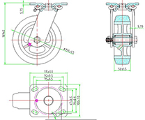 | Wheel Dia. D | Tread Width W | Load Cap. (kg) | Bearing Options | Swivel Radius E | Overall Height H | Plate Size XxY | Setting Pitch X’xY’ | Hole Dia. P |